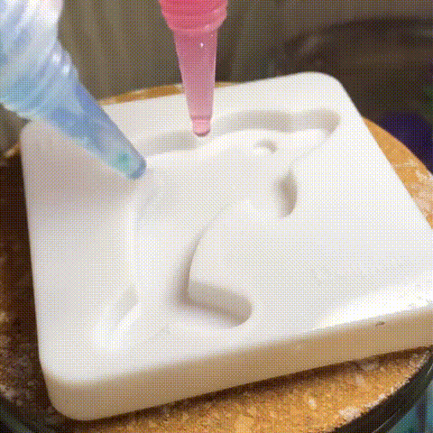 That chemical reaction is what turns the liquid gel into a firm, squishy jelly shape in seconds.