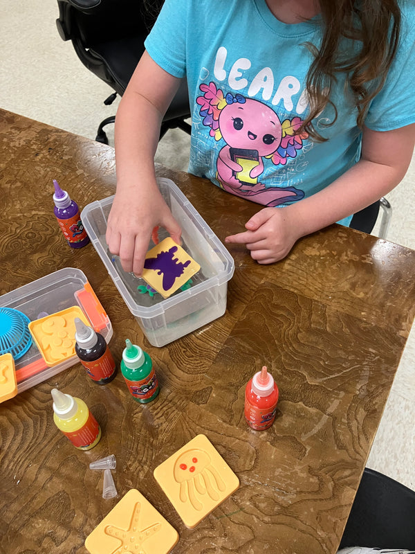 This is ALMOST amazing… kids are entertained for hours. Scratch that, kids AND parents. Parents need to be involved because IT IS FUN. Tip: LET IT SIT and settle before dipping into hardening solution.