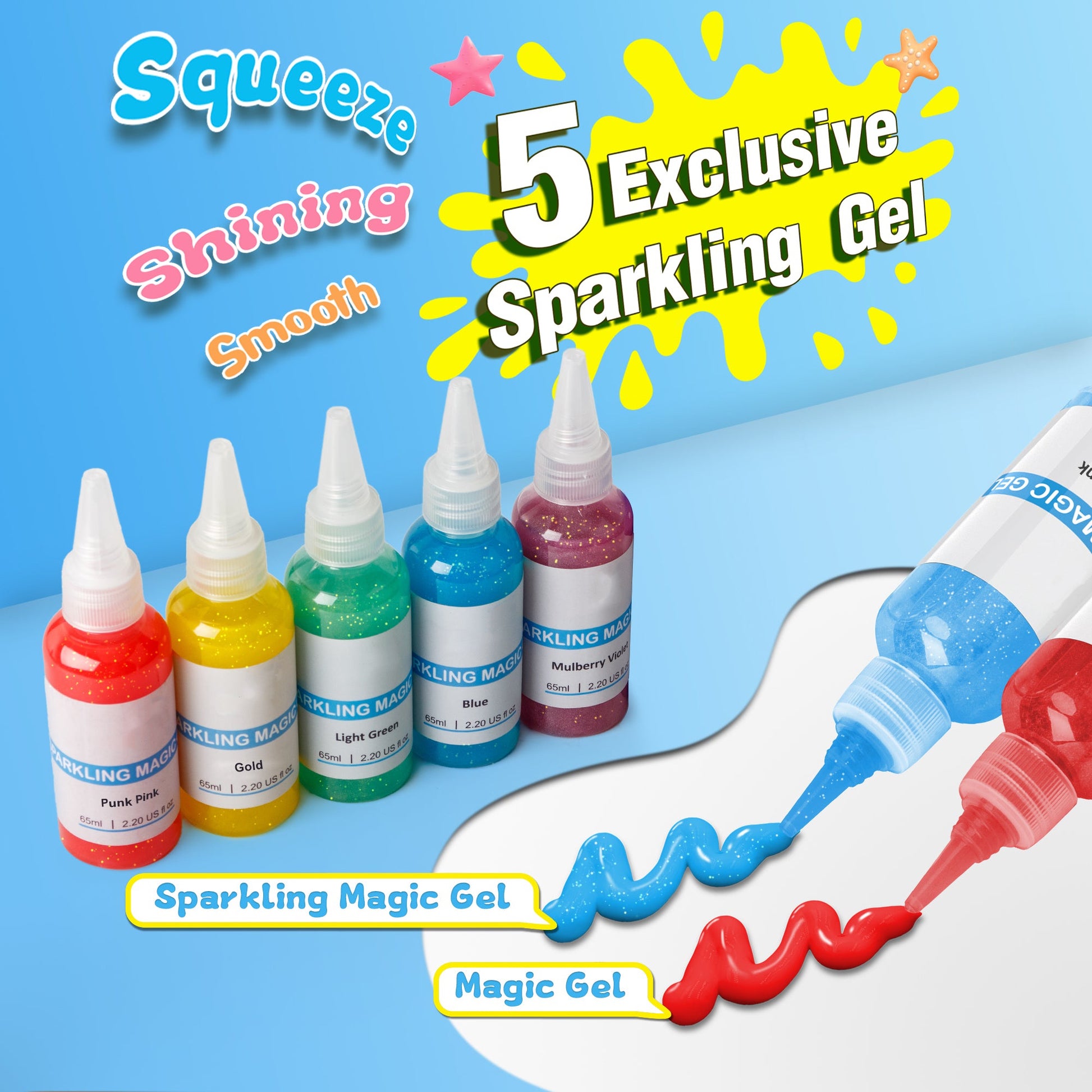 The gel is mainly made from a seaweed-based thickener mixed with water, color, and softeners, which turns solid when it reacts with calcium in the magic powder.